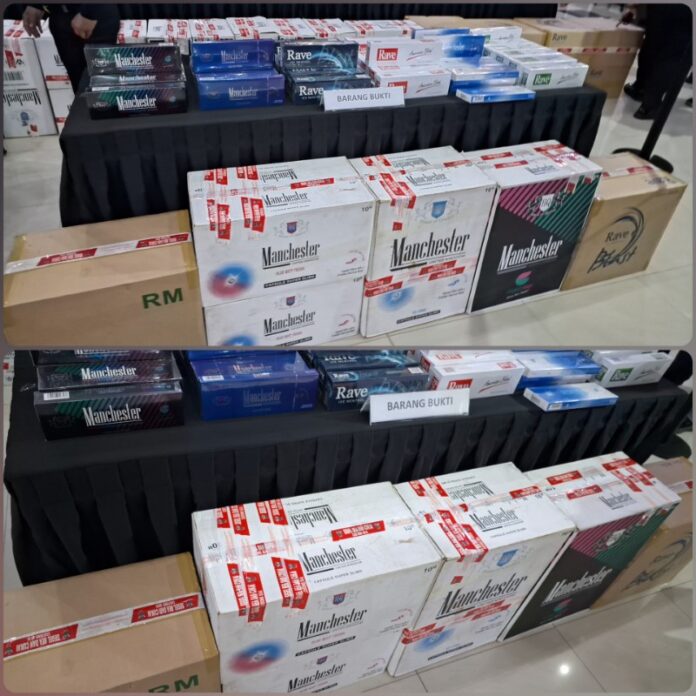 Total rokok tanpa cukai yang diamankan sebanyak 3,5 juta batang rokok atau 309 ton dengan berbagai merek seperti Manchester Double Drive, Rave Ice Menthol, HD Classic, dan Ofo Bold.