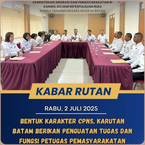 Rutan Barelang. – ( BATAM Expose.Com).———— ! Calon Pegawai Negeri Sipil (CPNS) di Rumah Tahanan Negara (Rutan) Kelas IIA Batam menerima pembekalan berupa penguatan tugas pokok dan fungsi (tupoksi) pemasyarakatan pada Rabu (02/07).