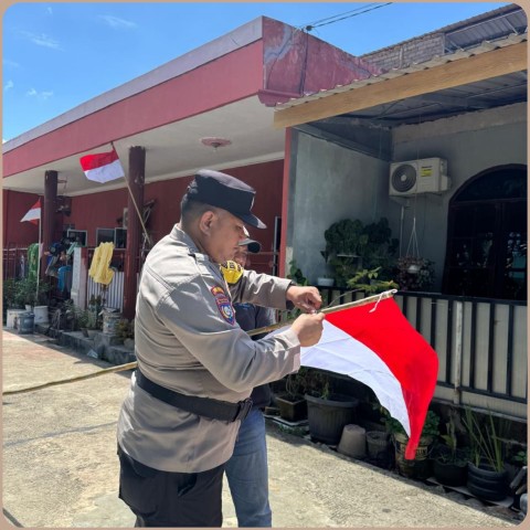 Mari kita bersama-sama memeriahkan HUT RI ke-80 dengan mengibarkan bendera di lingkungan kita,” ujar Aiptu Indoludin.