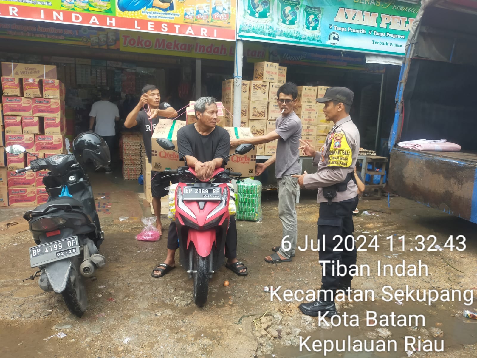 Sekupang. ( BATAM Expose.Com). ——– ! Aipda Nanda Bhabinkamtibmas Tiban Indah Polsek Sekupang Polresta Barelang Polda Kepulauan Riau rutin menyambangi warga binaanya, Bhabinkamtibmas melaksanakan giat sambang di salah satu toko perlengkapan, Sabtu (06/07).
