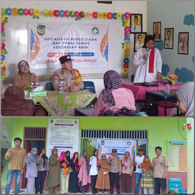 Batu Ampar . ( BATAM Expose.Com). —– – !  Kasus kekerasan terhadap anak di Kota Batam masih tinggi, oleh karena itu unit Reskrim dan Bhabinkamtibmas Kelurahan Seraya Polsek Batu Ampar Polresta Barelang Polda Kepri, melaksanakan sosialisasi pencegahan dan penanganan kekerasan anak, bertempat di Sekolah SDIT NURUL IHSAN Kelurahan Kampung Seraya Kecamatan Batu Ampar, Kota Batam, Kepulauan Riau, Rabu (22/11/2023).