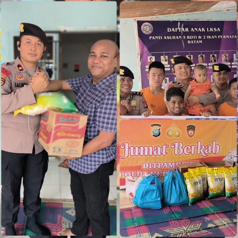 Kepri. – ( BATAM Expose.Com). ———– ! Direktorat Pengamanan Objek Vital (Ditpamobvit) Polda Kepulauan Riau melaksanakan kegiatan Bakti Sosial Jum’at Berkah di Panti Asuhan 5 Roti 2 Ikan, yang berlokasi di Perumahan Permata Bandara, Batu Besar, Kota Batam.
