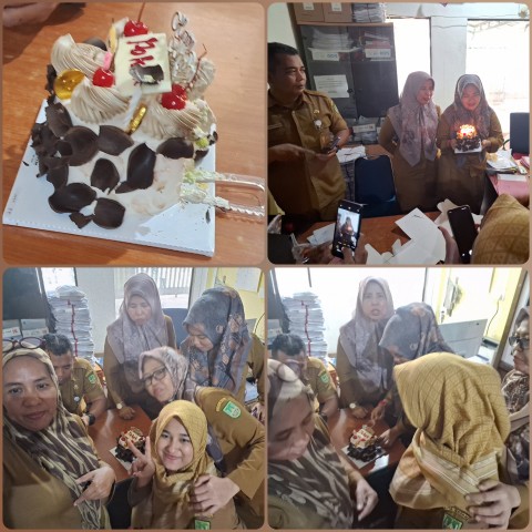 Sebut saja ibu Diding beserta rekan- rekannya ada 10 orang yang sama bertugas di Pememerintahan Dinas Kependudukan Catatan Sipil ( DISDUKCAPIL) Kota Batam membuat kejutan kepada rekan – rekan kerjanya Rina Yuliantika yang disapa setiap harinya ( Ibu Nay) tiba- tiba rekanya sudah bersiap masuk keruangan dari pintu masuk ke 10 orang rekannya mengucapkan Selamat Ulang Tahun sambil bernyanyi lagu ulang tahun sambil betepuk tangan gembira ria suasana menjadi riuh memberikan ucapan selamat..? Didalam ruangan.