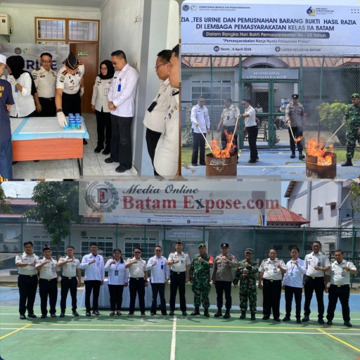 Lapas Barelang. —- ( BATAM Expose.com). —- !! — Lapas Batam menggelar kegiatan razia gabungan, tes urine, dan pemusnahan barang bukti pada Senin, 6 April 2026, dalam rangka memperingati Hari Bakti Pemasyarakatan ke-62.