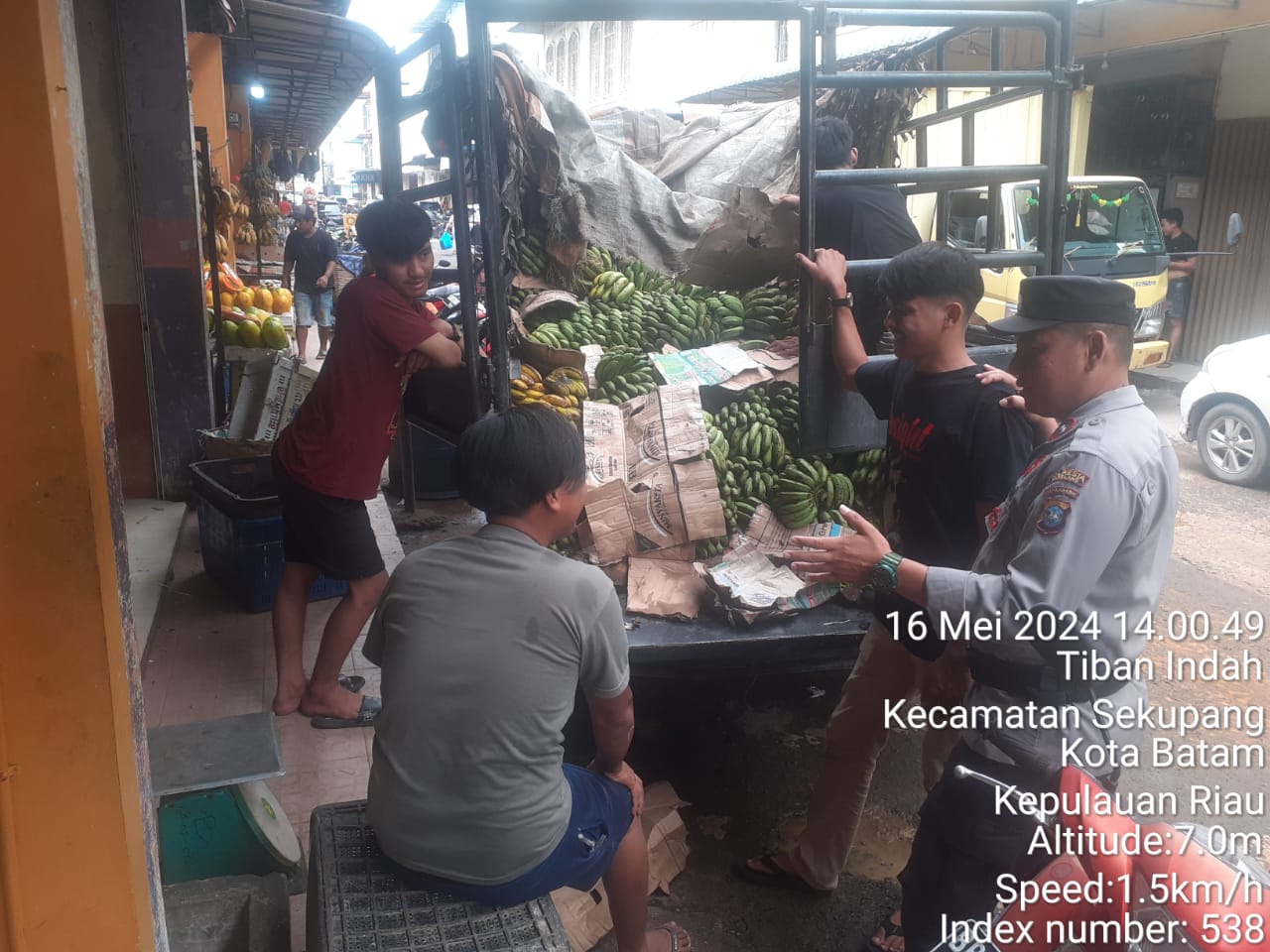 Sekupang. ( BATAM Expose.Com). —– – ! Piket Batara Biru Polsek Sekupang Polresta Barelang Polda Kepulauan Riau Aipda Erik Estrada melaksanakan giat patroli Dialogis, memberi Himbauan Kamtibmas kepada masyarakat di pasar Tiban center Kelurahan Tiban Indah Kecamatan Sekupang Kota Batam, Kamis (16/05).