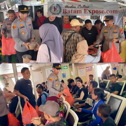 Kapolsek Kawasan Pelabuhan Batam, AKP Zharfan Edmond mengatakan, sebanyak 500 paket nasi kotak dibagikan kepada penumpang yang akan menyeberang melalui Pelabuhan ASDP Telaga Punggur.