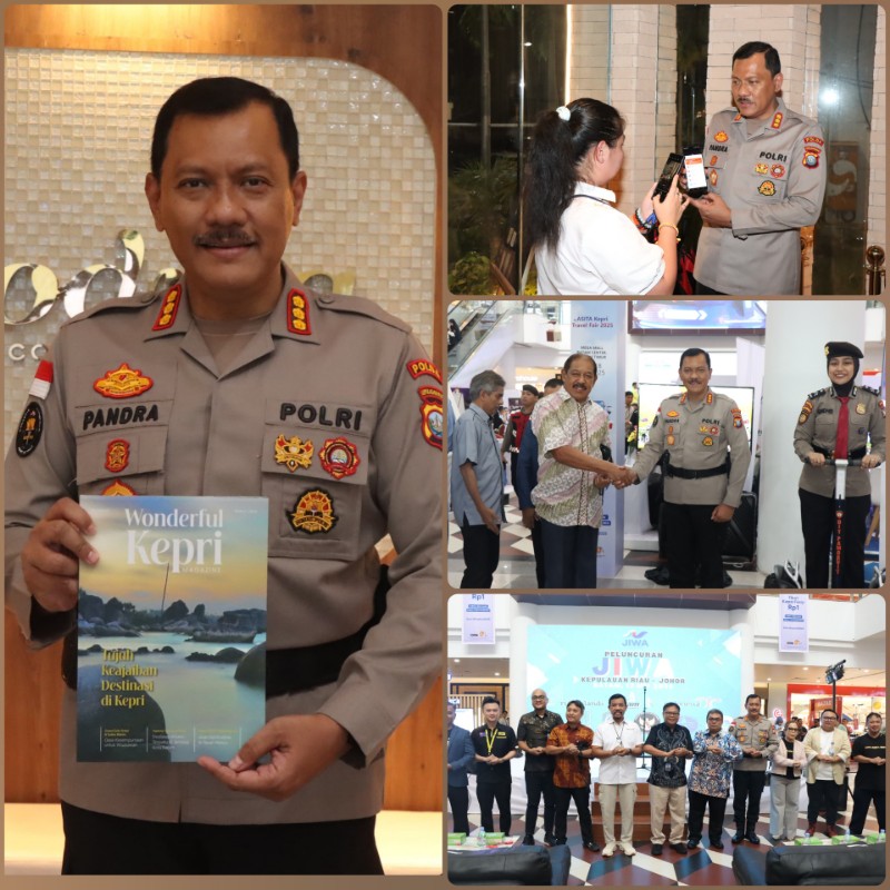 Kepri. – ( BATAM Expose.Com).———- ! Kabidhumas Polda Kepri Kombes Pol. Zahwani Pandra Arsyad, S.H., M.Si., mewakili Kapolda Kepri, Irjen. Pol. Asep Safrudin, S.I.K., M.H., menghadiri kegiatan peluncuran platform promosi wisata lintas batas “Jiran Istimewa” (JIWA) yang digelar di Mega Mall Batam Center, Sabtu (17/5/2025).