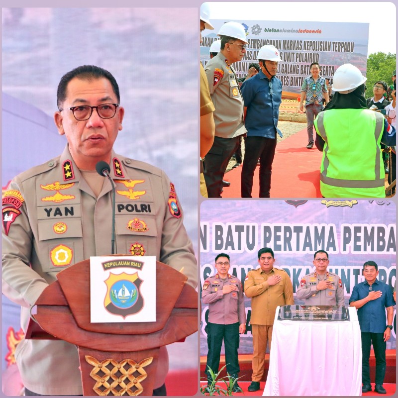 Bintan, ( BATAM Expose.Com). —— ! Kapolda Kepulauan Riau Irjen Pol Drs. Yan Fitri Halimansyah, M.H. meresmikan pembangunan Markas Kepolisian Terpadu dan Polsubsektor yang akan dibangun di daerah Galang Batang yang tepatnya di Kawasan Ekonomi Khusus (KEK), peresmian pembangunan tersebut ditandai dengan Peletakan Batu Pertama oleh Kapolda Kepri bersama dengan Santoni selaku pimpinan Kantor KEK Galang Batang, Bupati Bintan Roby Kurniawan dan Wakil Bupati Bintan Ahdi Muqsith, Selasa (21/5/2024).