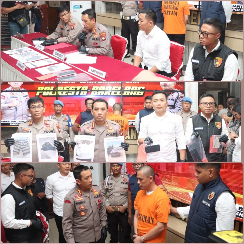 Polresta Barelang. ( BATAM Expose.Com). – —- ! Kapolresta Barelang Kombes Pol Nugroho Tri N, SH, SIK, MH menggelar konferensi pers ungkap pelaku pembunuhan berencana serta curas yang di dampingi oleh Kasat Reskrim Polresta Barelang Kompol Budi Hartono, SIK, MM, Kasihumas Polresta Barelang AKP Tigor Sidabariba, SH, Kanit Reskrim Polresta Barelang Iptu Mochamad Rizki Ramadhani, S.Tr.K. bertempat di Lobby Mapolresta Barelang. Senin (02/10/2023)