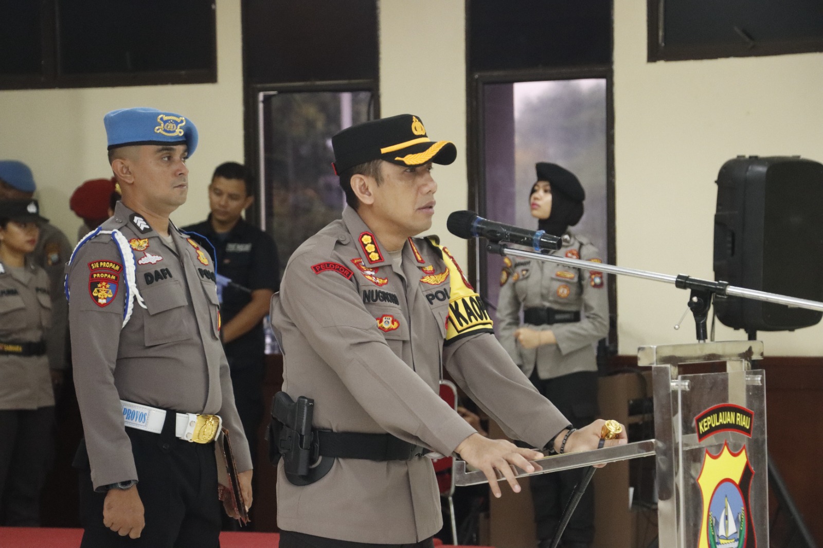 Kapolresta Barelang Kombes Pol Dr. Nugroho Tri N, SIK, MH bertindak selaku inspektur upacara, kemudian di hadiri oleh Wakapolresta Barelang AKBP Syafrudin Semidang Sakti, SIK, MH, PJU Polresta Barelang, Perwira serta Personil Polresta Barelang.