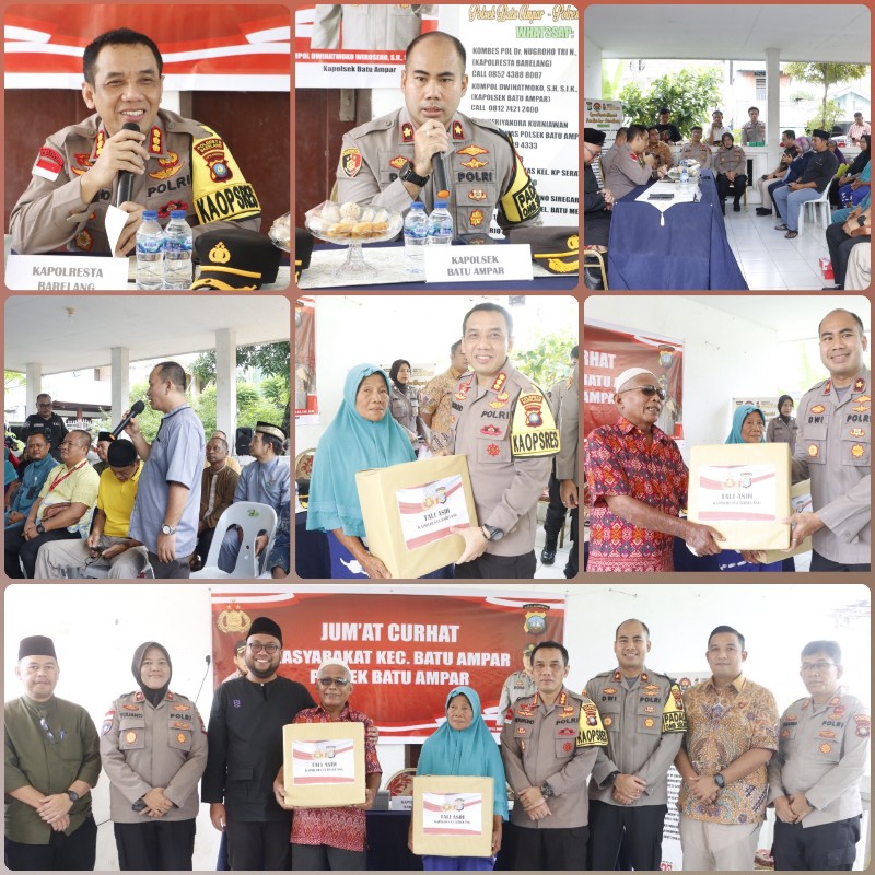 Kapolresta Barelang Kombes Pol Nugroho Tri N, SH, SIK, MH mengatakan kehadiran kami dari Polresta Barelang dalam kegiatan Jum’at Curhat kamtibmas bersama masyarakat Kecamatan Batu Ampar ini sebagai bentuk kepedulian kami dari Polri kepada Masyarakat khususnya Masyarakat Kecamatan Batu Ampar dengan tujuan kegiatan ini adalah mendengarkan langsung keluhan Masyarakat serta langsung menanggapi dan merespon keluhan masyarakat tersebut.