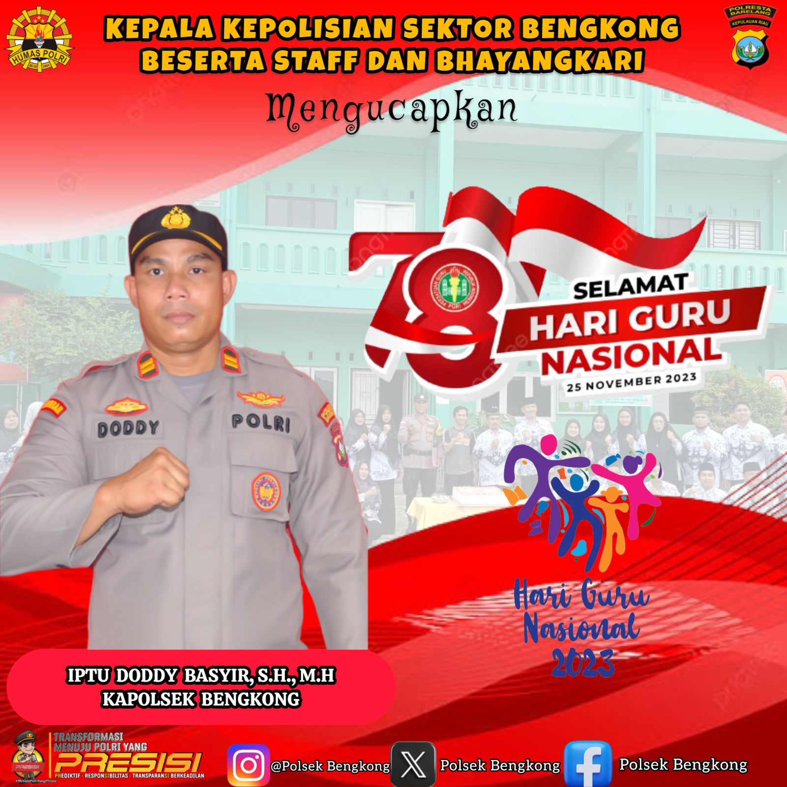 Pada kesempatan ini pun Kapolsek Bengkong mengucapkan selamat memperingati Hari Guru Nasional 2023.