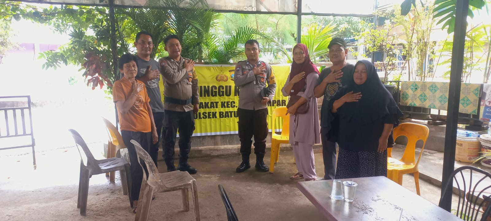 “Kegiatan ini bertujuan untuk menampung aspirasi atau masukan dari bpk ibu sekalian, harapan kami kegiatan dalam Minggu Kasih ini dapat menjalin komunikasi yg baik antara kepolisian dan masyarakat serta Instansi terkait yang ada di wilayah Kecamatan Batu Ampar dalam menciptakan rasa aman ditengah tengah masyarakat, silahkan sampaikan saran dan masukan tentang situasi Kamtibmas di lingkungan bpk ibu ” ujar Bhabinkamtibmas.