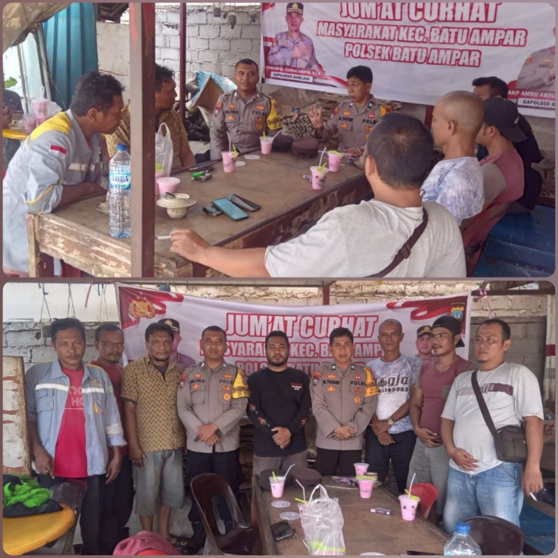Kaposek Batu Ampar Akp Amru Abdullah S.I.K.,M.Si melalui Bhabinkamtibmas Seraya Aiptu Thohir menyampaikan bahwa kegiatan Jumat Curhat adalah bentuk nyata dari program Quick Wins Presisi Kapolri untuk meningkatkan pelayanan dan mendekatkan diri dengan masyarakat, mengajak bersama sama warga masyarakat untuk saling komunikasi, informasi menjaga keamanan dilingkungan nya dari tindakan kriminal, hal-hal yang menggangu situasi Kamtibmas, dengan itu harapan kami agar terciptanya situasi kamtibmas yang lebih aman dan kondusif di lingkungan bpk ibu.