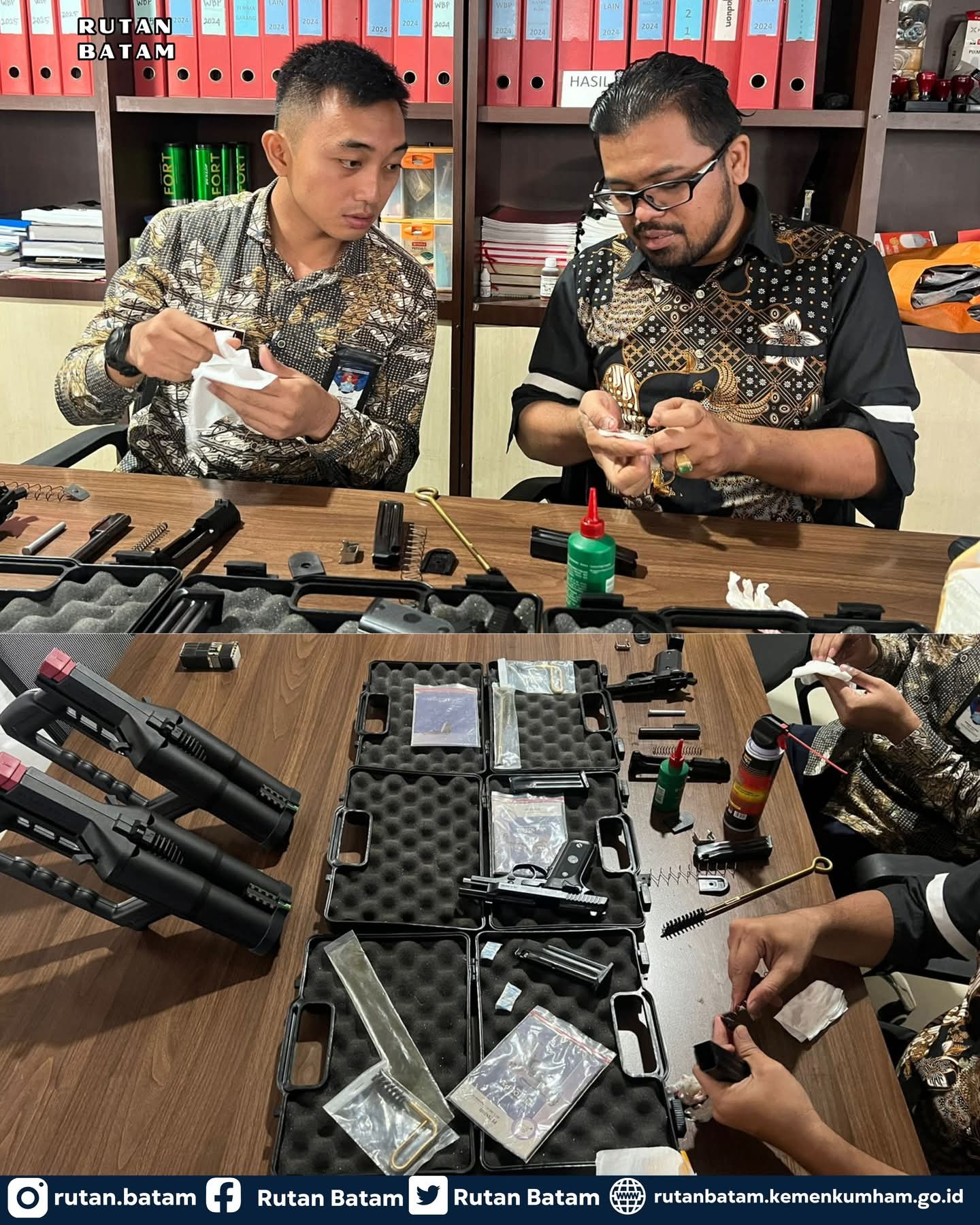 Rutan Batam. — ( BATAM Expose.Com). ————- ! Dalam rangka menjaga kesiapsiagaan dan keamanan di lingkungan Rumah Tahanan Negara, Kesatuan Pengamanan Rutan Kelas IIA Batam melaksanakan kegiatan rutin perawatan sarana dan prasarana pengamanan, khususnya terhadap senjata api, Kamis (14/08).