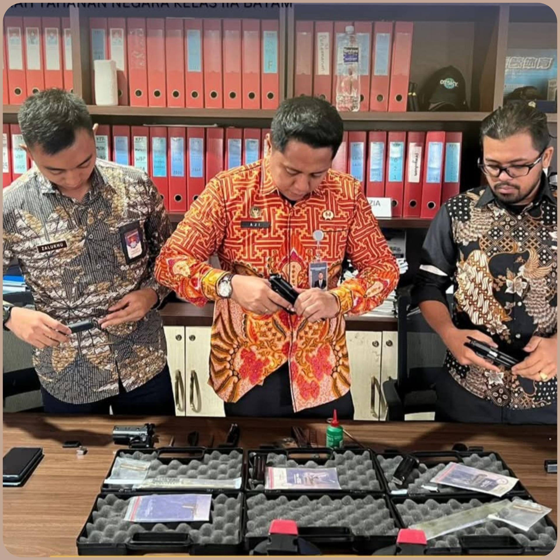 Rutan Batam. — ( BATAM Expose.Com). ————- ! Dalam rangka menjaga kesiapsiagaan dan keamanan di lingkungan Rumah Tahanan Negara, Kesatuan Pengamanan Rutan Kelas IIA Batam melaksanakan kegiatan rutin perawatan sarana dan prasarana pengamanan, khususnya terhadap senjata api, Kamis (14/08).