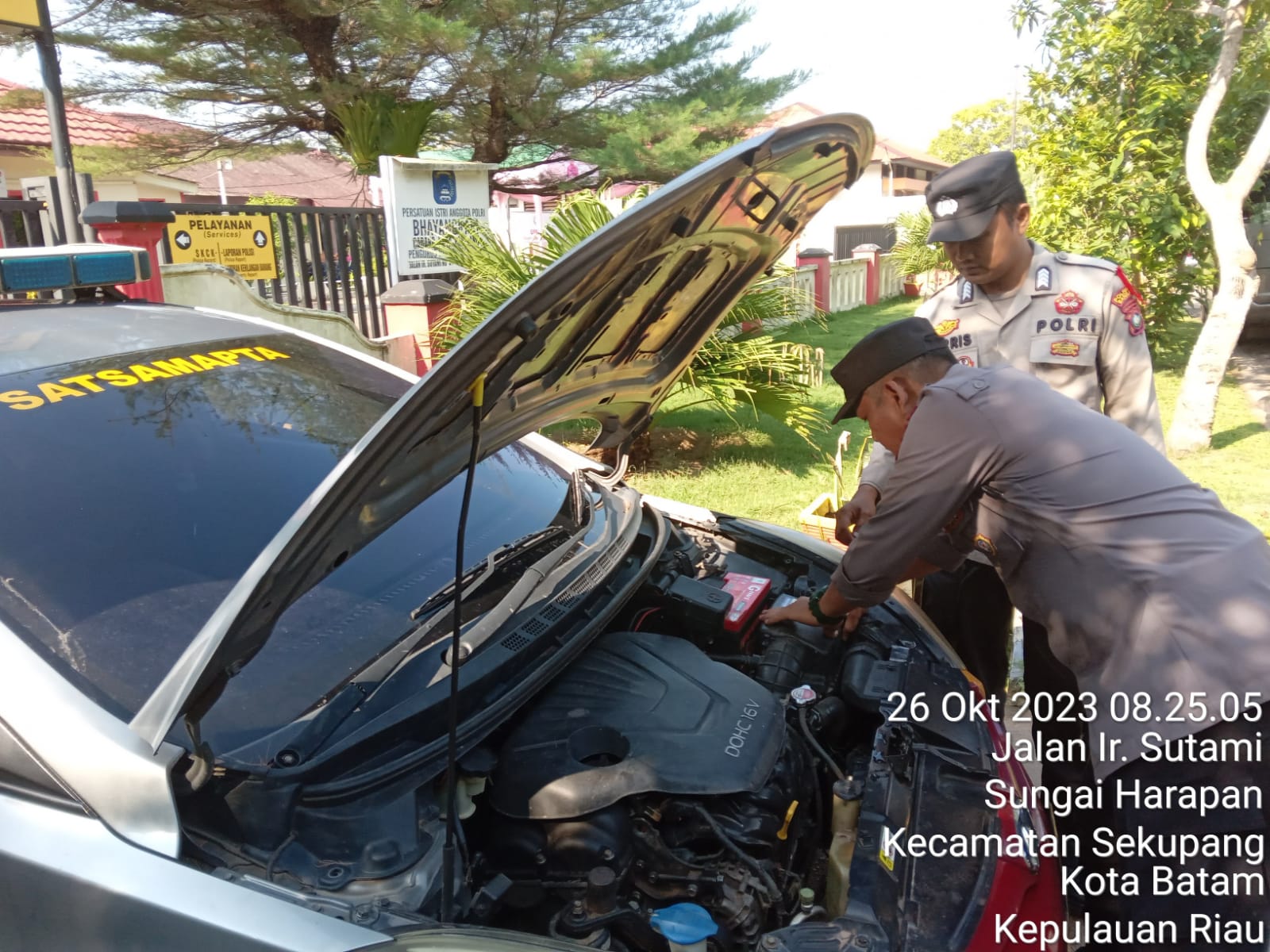 Kesiapan Patroli, anggota piket Batara Biru Sekupang cek kelayakan kendaraan