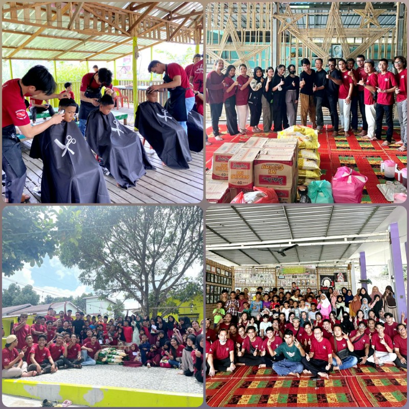 Foto : Terlihat Anak Panti Chellsey mengunjungi Pantai Asuhan Bunayya yang berlokasi di Barelang sedang mengikuti amal membagi sembako dan Memotong rambut kepada anak panti Asuhan.( Humas UNIBA.- / R- Dok : Indralis- OpuNg)