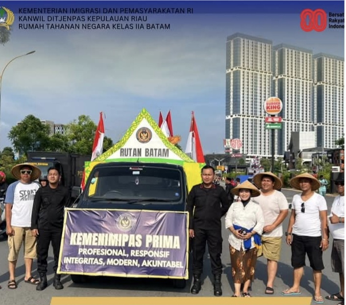 Rutan Batam.– ( BATAM Expose.Com). ———— ! Rumah Tahanan Negara Kelas IIA Batam turut serta meriahkan Pawai Kendaraan Hias dalam rangka memperingati HUT ke-80 Kemerdekaan Republik Indonesia yang digelar Pemerintah Kota Batam.