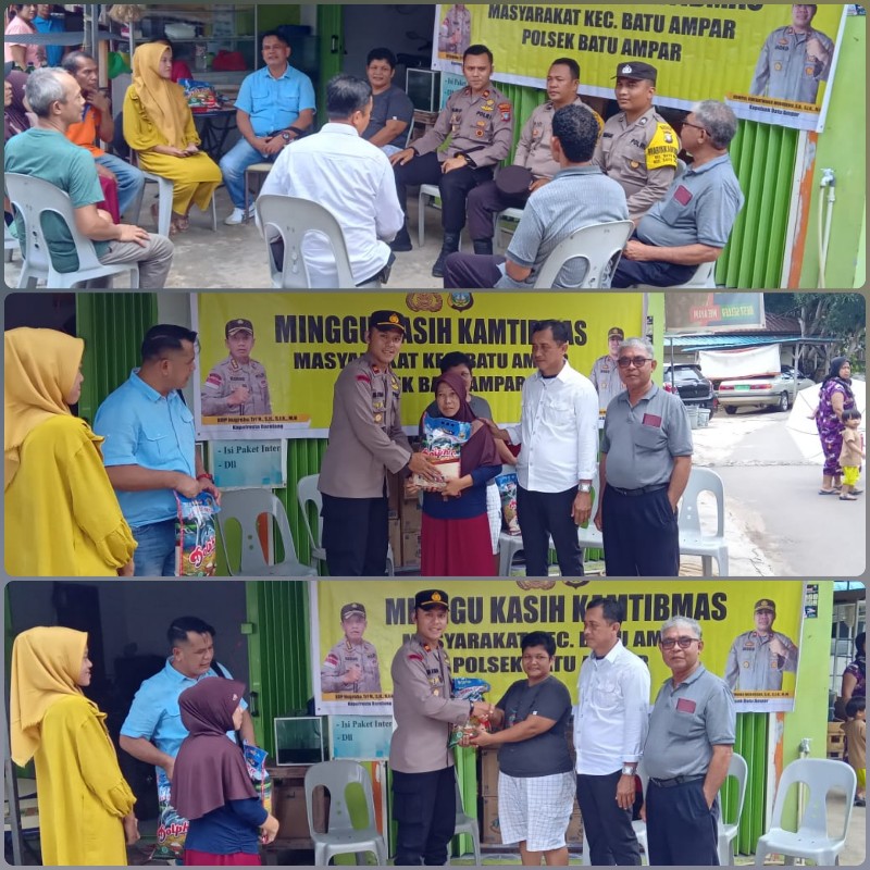Selanjutnya sebagai penutup kegiatan Minggu kasih , Waka Polsek beserta personil Polsek Batu Ampar melaksanakan Penyerahan bantuan Bansos berupa paket Beras dari Polsek batu ampar kepada warga Batu Merah dan sesi