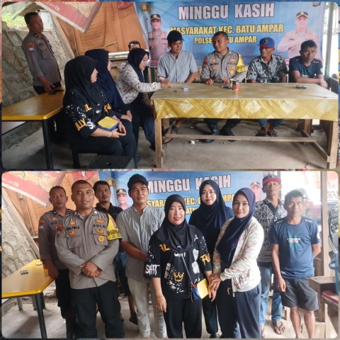 Dan dalam “kegiatan ini bertujuan untuk menampung aspirasi atau masukan dari bapak ibu sekalian, harapan kami kegiatan dalam minggu kasih ini kami jajaran polsek batu ampar polresta barelang menyampaikan bimbauan dari bapak Kapolda Kepri , Kapolresta Barelang mari bersama kita jaga kota batam ini ,polri menindak tegas segala bentuk premanisme yang dapat mengganggu investasi di kota Batam., memberantas segala bentuk tindakan kriminal ,kejahatan, kami jajaran khususnya polsek batu ampar polresta barelang ,terus Bersinergi , komunikasi menjaga keamanan, ketertiban lingkungan masyarakat ,bapak ibu sekalian, dan kami juga menghimbau terus waspada tentang kasus kasus tentang, berita” hoax di medsos cek dulu kebenerannya, penipuan” online lewat aplikasi atau media sosial dan kasus curanmor selalu waspada parkir kendaraan bermotor anda ditempat sudah dianggap aman , gunakan selalu kunci ganda atau di kasih rodanya di rantai biar tambah aman ,