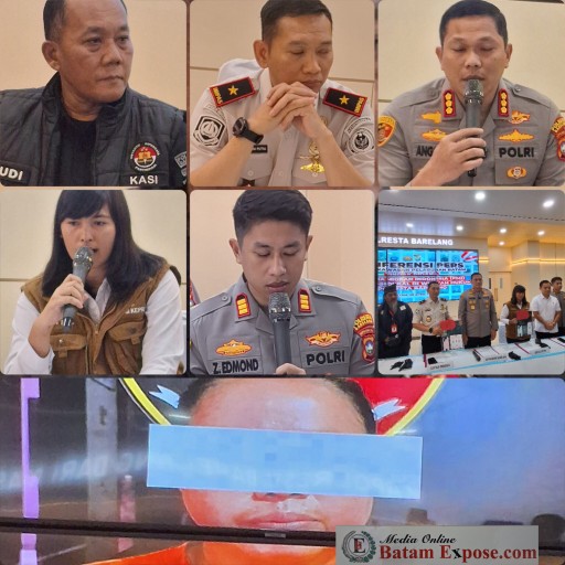 Polresta Barelang. —– ( BATAM Expose.Com). —– !! — Polresta Barelang melalui Satreskrim dan Polsek Kawasan Keamanan Pelabuhan (KKP) Polresta Barelang menggelar konferensi pers terkait pengungkapan tindak pidana penempatan Pekerja Migran Indonesia (PMI) secara non prosedural yang dilaksanakan di Lobby Mapolresta Barelang.