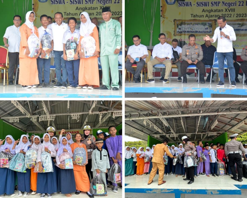POLDA KEPRI SALURKAN PERLENGKAPAN SEKOLAH KE SD NEGERI 24 DAN SMP NEGERI 22 BATAM TANJUNG KERTANG, REMPANG CATE, KECAMATAN GALANG