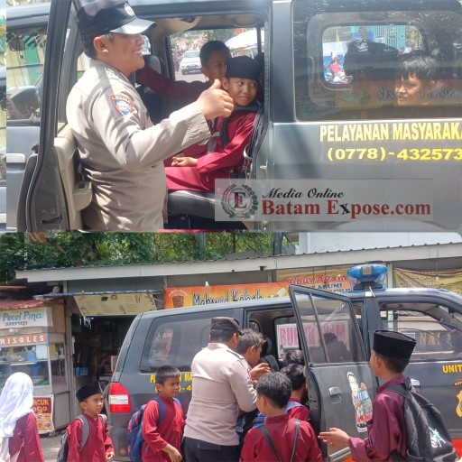 Foto : Ist- Salam Prasisi Terlihat personil dari Polsek Batu Ampar.sedang memberikan arahan dan pengawasan kepada anak pelajar unutuk menjaga keselamatan dijalan dengan mengantar sampai tujuan Si AMRU.( foto : Indralis – OpuNg)