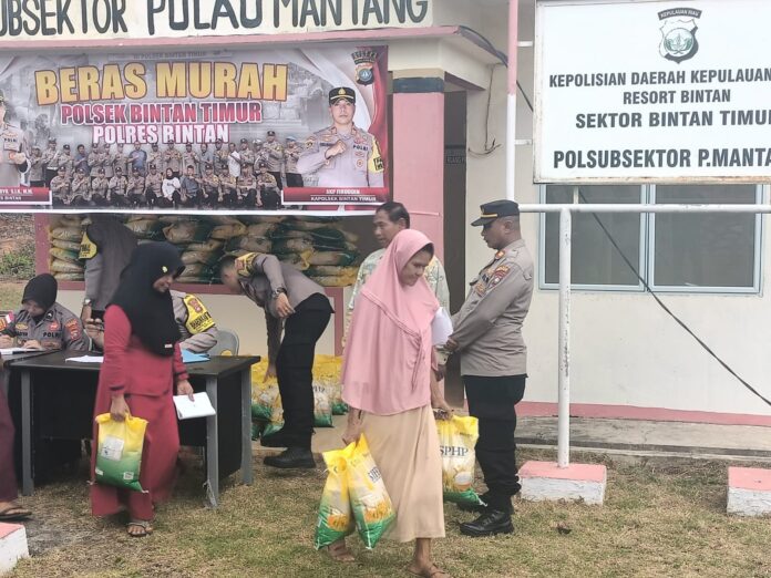 Batam.( BATAM Expose.Com).—— ! Polsek Bintan Timur Polres Bintan Menggelar Program Beras Murah yang Dilaksanakan di Desa Mantang lama Kec. Mantang, Kamis (24/10/24).