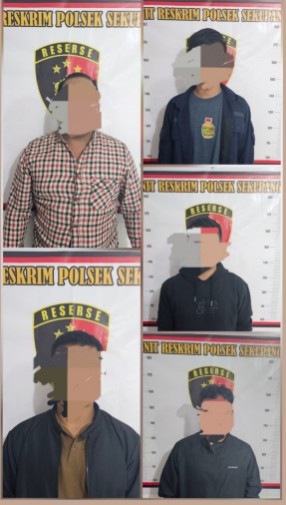 Foto : Ist- Tampak Ke 5 Bagundal di amankan di Polsek Sekupang untuk Diperiksa sesuai hukum yang berlaku oleh Juru periksa Polsek Sekupang.( Foto : SKP Bripda Hidayat.S.I.K.- R/ Dok ; Indralis – OpuNg)