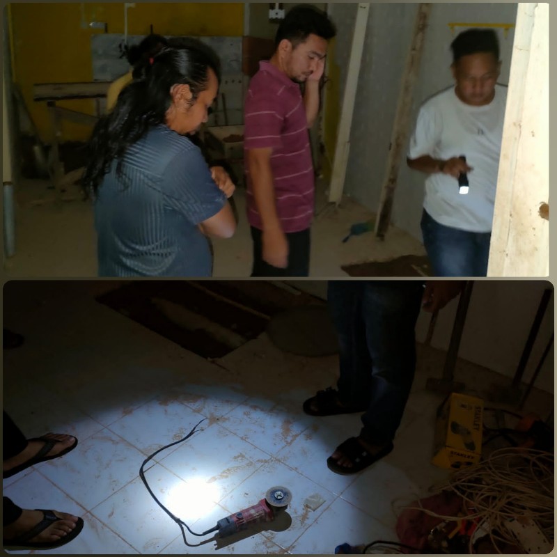 Selanjutnya saksi meminta tolong kepada temannya untuk mematikan breker listrik yang mana diduga korban terkena arus listrik dikarenakan kondisi kabel grinda yang dipakai dalam kondisi putus dan masih dialiri arus listrik.
