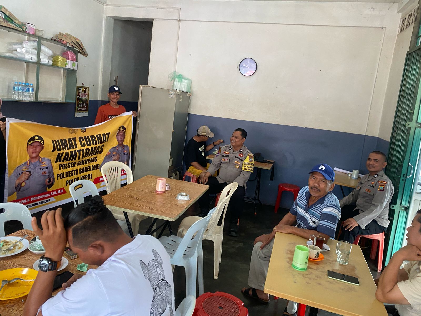 Sekupang. ( BATAM Expose.Com).——-‐— ! Dalam rangka mempererat hubungan antara kepolisian dan masyarakat, Polsek Sekupang menggelar program Jumat Curhat Kamtibmas Presisi Kapolri di Kedai Kopi Rindu, Kelurahan Sungai Harapan, Kecamatan Sekupang Kota Batam, Jumat (21/03).