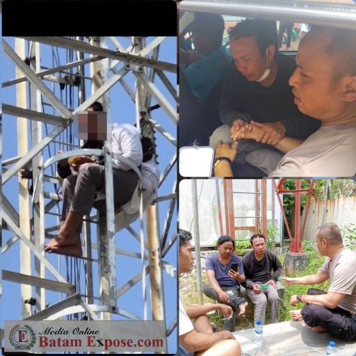 Sekupang. – ( BATAM Expose.Com). ——- !! — Upaya penyelamatan dramatis dilakukan aparat kepolisian bersama tim penyelamat terhadap seorang pria yang diduga hendak melakukan percobaan bunuh diri dengan memanjat sebuah tower di samping Masjid Baiturrahman, Kelurahan Sungai Harapan, Kecamatan Sekupang, Kota Batam.