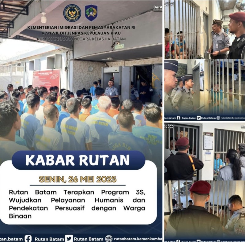Rutan Batam Terapkan Program 3S, Wujudkan Pelayanan Humanis dan Pendekatan Persuasif dengan Warga Binaan Senin, 26 Mei 2025