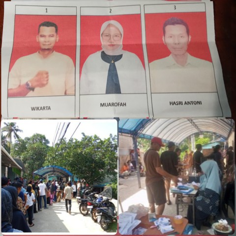 Di lokasi pemilihan, terlihat surat suara resmi Pemilihan Ketua RW 008 yang mencantumkan tiga calon, yakni Wikarta, Muarofah, dan Hasri Antoni, telah disiapkan.